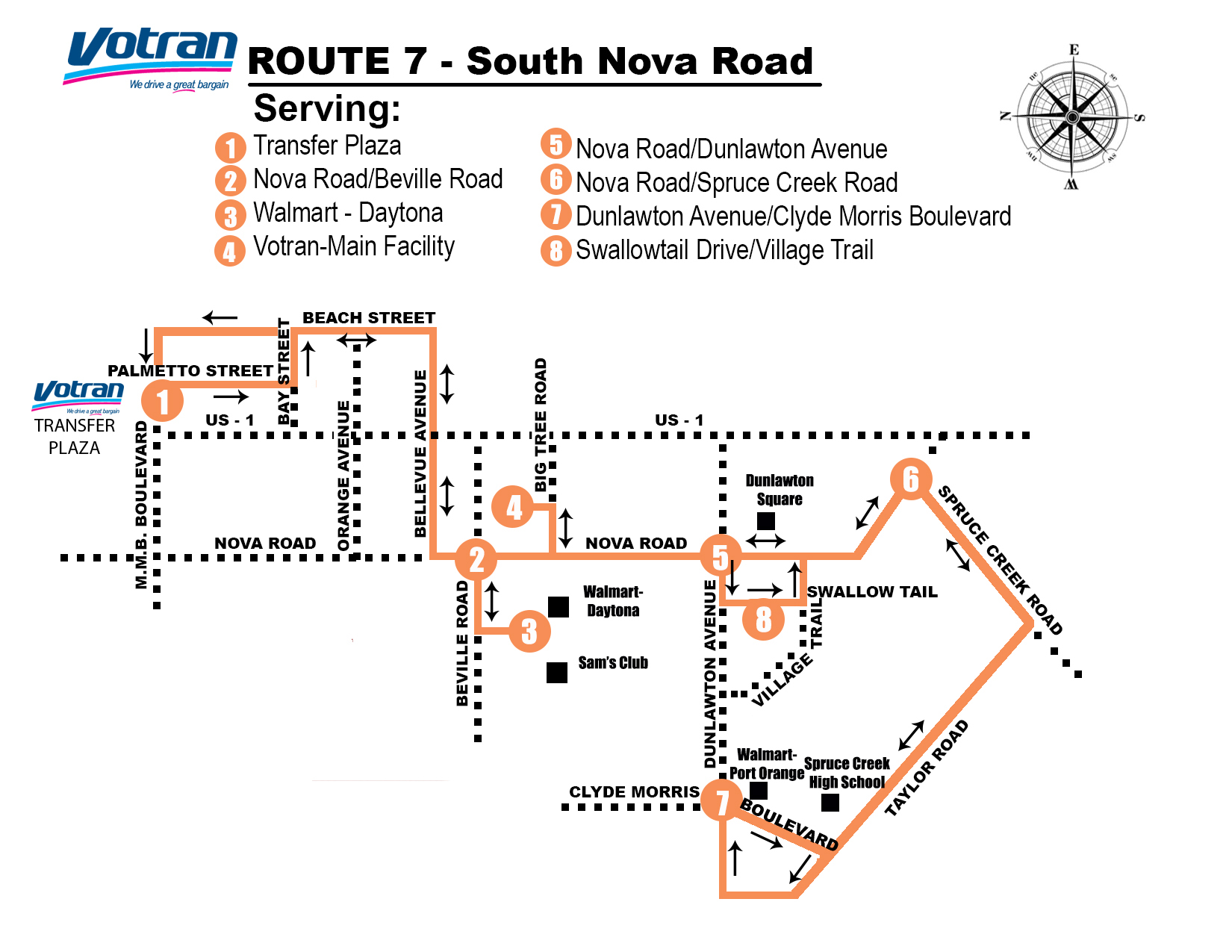 TRANSFER PLAZA | WALMART BEVILLE SHELTER | VOTRAN OFFICE | NOVA DUNLAWTON SB | NOVA & SPRUCE CREEK NB | CLYDE MORRIS & DUNLAWTON 7 |