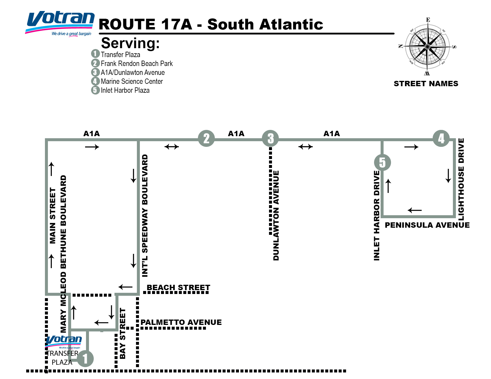 TRANSFER PLAZA | FRANK RENDON BEACH PARK SB | A1A & DUNLAWTON OB | MARINE SCIENCE CENTER |
