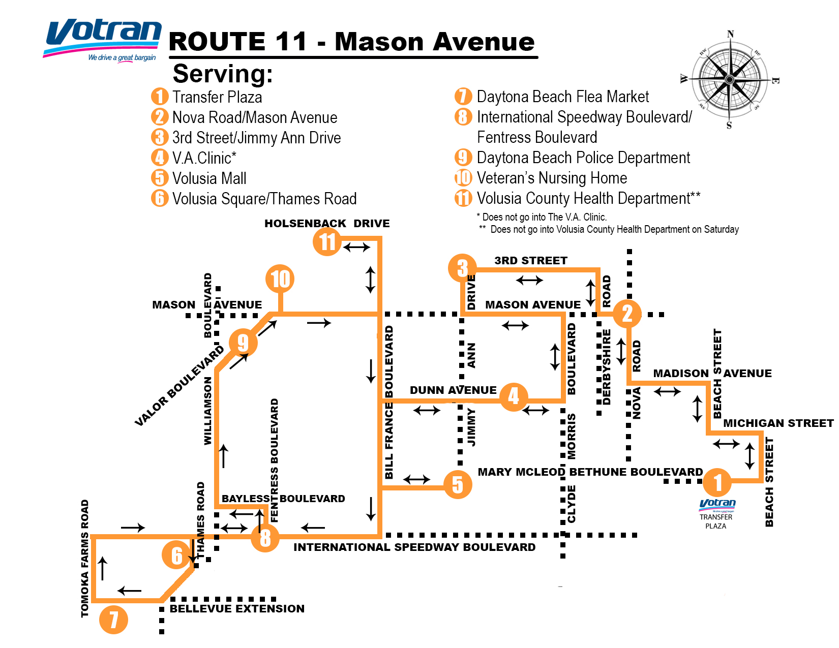 FLEA MARKET | 1879 MASON AVE. IB | VOLUSIA MALL MAIN ENTRANCE OB | NATIONAL HEALTH CARE & DUNN IB | JIMMY ANN & 3RD ST. | NOVA MASON 11 IB | TRANSFER PLAZA |